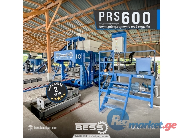 იყიდება BESS მარკის PRS 600 ნახევრად ავტომატური ბლოკის და ქვაფენილის დანადგარი. ნახევრად ავტომატური ოპერაციული სისტემით, ბეტონის მორევის სამუშაოები სრულდება მიწის ზედაპირზე. გათვლილია 24 საათიანი მუშაობისთვის. ასევე გვაქვს სხვადასხვა ავტომატიზაციის სისტემები და მოცულობების წარმოება. გაქვთ საშუალება მხოლოდ ყალიბის შეცვლის შემთხვევაში, აწარმოოთ: 5 სმ.-დან / 25 სმ-მდე სიმაღლის მასალა, ეს იქნება: ქვაფენილი, ბლოკი, იზობლოკი, ბორდიურები , სართულშუა გადახურვის ფილა, ბუხარის ქვა თუ ბეტონი. დღიური წარმოება (8 საათში) 6.000 ბლოკი ხოლო 400 მ² ქვაფენილის ტოლია. ბუნკერის რაოდენობა/ერთ ბუნკერიანი, მართვის სისტემა ოპერატორის კონტროლით. გამოცდილი სამუშაო გუნდის წყალობით დატვირთვა- გადაცემა და განბაჟების მსგავსი სამუშაოების შესრულებაში, თქვენი ჩარევის გარეშე. ყველა ამ საქმეს თავად ვასრულებთ. ბლოკის დანადგარი
