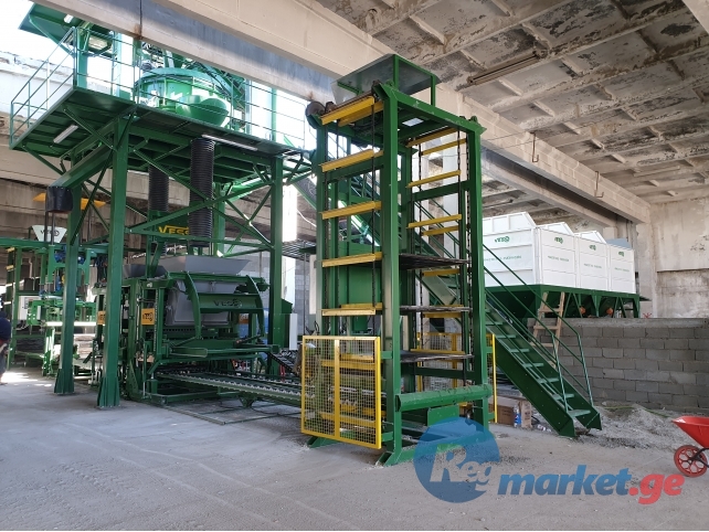 იყიდება COMPACT / AVANTGARDE 6.2 სრულად ავტომატური სისტემის ბლოკის და ქვაფენილსი დანადგარი. ერთი ბუნკერიანი - სრულად ავტომატური სისტემა - პადონების გადაადგილების სისტემა სატვირთელით - ნედლეულის სისტემა სრულად ავტომატური (ბუნკერი და ცემენტის სილოსით).დღიური წარმოება 6.000 ცალი 20- იანი ბლოკი - ბეტონის წარმოების მოცულობა 30 m³ / საათში - გადაზიდვის მოცულობა 3 x OT კონტეინერი. დამონტაჟების ადგილი 85 მ2 - საერთო სიმძლავრე 37 კვ - პადონის ზომა 55 x 115 და მაქსიმუმ 2 კაცი მუშაობს წარმოებაში. განკუთვნილია 24 საათიანი მუშაობისათვის. სპეციალური ძრავებით ძალიან სწრაფი და ხარისხიანი წარმოება აქვს. მარტო ყალიბის შესაცვლელად 2 სმ.-დან / 25 სმ.-ამდე სიმაღლის ყველა სახეობის წარმოება შესაძლებელია. გამოცდილი სამუშაო გუნდის წყალობით დატვირთვა- გადაცემა და განბაჟების მსგავსი სამუშაოების შესრულებაში, თქვენი ჩარევის გარეშე ყველა ამ საქმეს თავად ვასრულებთ.