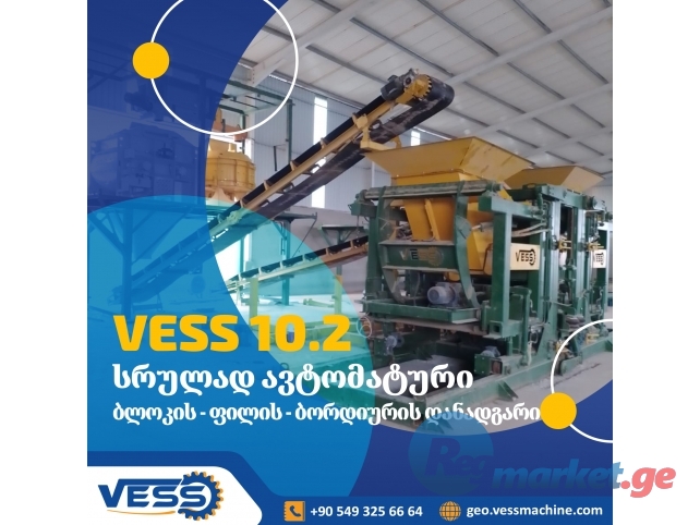 იყიდება VESS 10.2 სრულად ავტომატური ბლოკის და ქვაფენილის დანადგარი. ბეტონის მორევის სამუშაოები სრულდება მიწის ზედაპირზე. მოცემული დანადგარი გათვლილია 24 საათიანი მუშაობისთვის. ყალიბის შეცვლის საშუალებით აწარმოოთ: 5 სმ.-დან / 25 სმ-მდე სიმაღლის მასალა, ეს იქნება: ქვაფენილი, ბლოკი, იზობლოკი, ბორდიურები, სართულშუა გადახურვის ფილა, ბუხარის ქვა და ბეტონი. დღიური წარმოება (8 საათში) 10.000 ცალი ბლოკი ხოლო 750 მ² ქვაფენილი და 3.000 ცალი ბორდიური. ბუნკერის რაოდენობა და მოცულობა-ორბუნკერიანი / 8 მ³ X 3 მართვის სისტემა - კომპიუტერული სისტემით. გამოცდილი სამუშაო გუნდის წყალობით დატვირთვა- გადაცემა და განბაჟების მსგავსი სამუშაოების შესრულებაში, თქვენი ჩარევის გარეშე. ყველა ამ საქმეს თავად ვასრულებთ. ასევე შეძენილ ბლოკის დანადგარებს ვამონტაჟებთ უფასოდ და ასევე მოყვება 2 წლიანი გარანტია და 5 წლიანი უფასო სერვისი. ბლოკის დანადგარი,