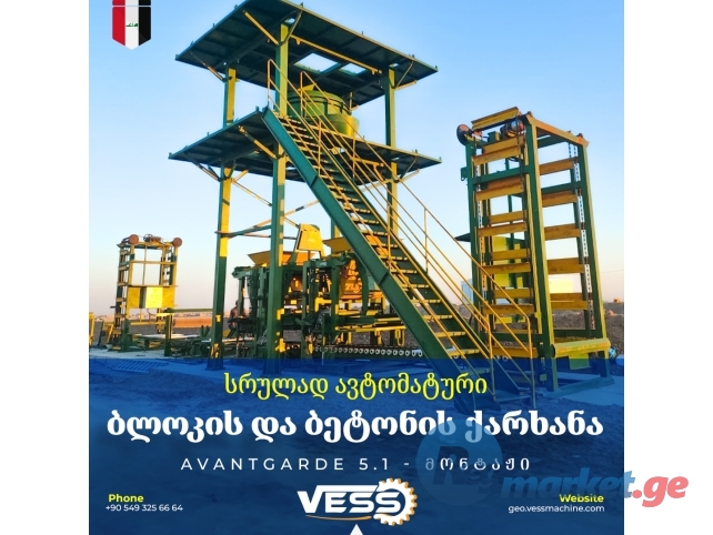 იყიდება COMPACT / AVANTGARDE 5.2 სრულად ავტომატური სისტემის ბლოკის - ქვაფენილის - ბორდიურის და ბეტონის ქარხანა. ორ ბუნკერიანი - PAN მიქსერი - დღიური წარმოება (8 საათში) 5.000 ცალი ბლოკი. 350 მ² ქვაფენილი 1.500 ცალი ბორდიური. მზა ბეტონის წარმოება საათში 15 მ³, ასევე გვაქვს სხვადასხვა წარმადობის ბლოკის დანადგარები. SCADA კომპიუტერული პროგრამის მართვა. ელექტრო გაყვანილობა გერმანული ორიგინალი SIEMENS - SCHNAIDER. ბლოკის დანადგარის დისტანციური მართვის შესაძლებლობა. კომპიუტერული პროგრამის დამცავი ონლაინ UPS – PLC. სპეციალური ძრავებით ძალიან სწრაფი და ხარისხიანი წარმოება აქვს. მაქსიმალური მომგებიანობა პერსონალის დაბალი მოთხოვნით - მოვლის დაბალი ღირებულება. წარმოება – მიწოდება – დამონტაჟება ვადაში. სათადარიგო ნაწილები ყველგან მოიძებნება. უფასო დამონტაჟება და ტესტირება ბლოკის დანადგარი. უფასო ინფრასტრუქტურის პროექტი. ფუნქცია, რომელიც შეიძლება ბლოკის დანადგარი ადვილად გადაიტანოთ სხვა ობიექტზე. 2 წელი გარანტია. 5 წლიანი უფასო სერვისი. ბლოკის და ბეტონის ქარხნები.