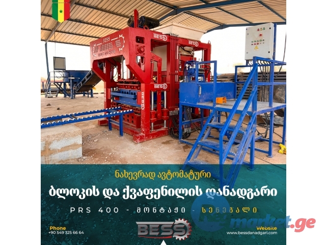 იყიდება BESS მარკის PRS 600 ნახევრად ავტომატური ქვაფენილის და ბლოკის ცეხი. ნახევრად ავტომატური ოპერაციული სისტემით, ბეტონის მორევის სამუშაოები სრულდება მიწის ზედაპირზე. გათვლილია 24 საათიანი მუშაობისთვის. ასევე გვაქვს სხვადასხვა ავტომატიზაციის სისტემები და მოცულობების წარმოება. გაქვთ საშუალება მხოლოდ ყალიბის შეცვლის შემთხვევაში, აწარმოოთ: 5 სმ.-დან / 25 სმ-მდე სიმაღლის მასალა, ეს იქნება: ქვაფენილი, ბლოკი, იზობლოკი, ბორდიურები , სართულშუა გადახურვის ფილა, ბუხარის ქვა თუ ბეტონი. დღიური წარმოება (8 საათში) 6.000 ბლოკი ხოლო 400 მ² ქვაფენილი და 2.000 ცალი ბორდიური. ბუნკერის რაოდენობა/ერთ ბუნკერიანი, მართვის სისტემა ოპერატორის კონტროლით.