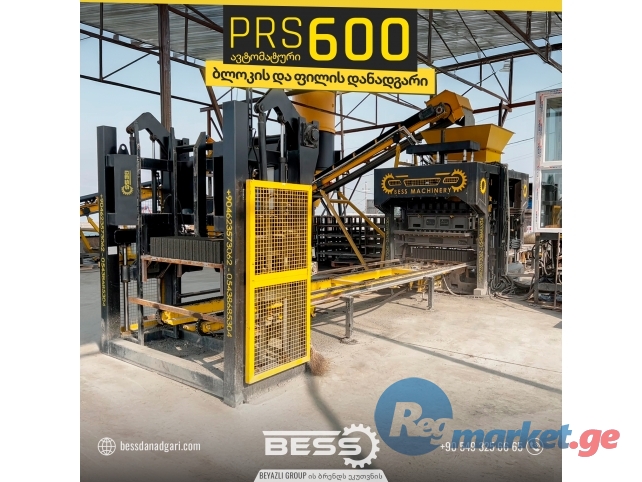ავტომატური PRS-600 / 8 საათში დაამზადებს 6.000 ცალ ბლოკს. 400 მ² და 2000 ცალი ბორდიური.