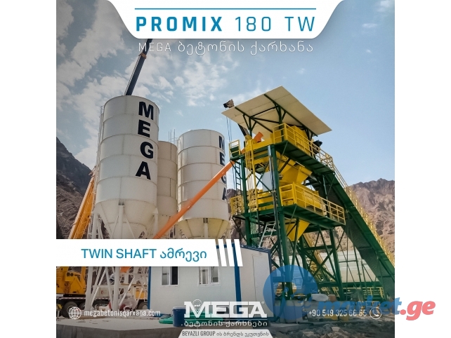 PROMIX 180 TW მიქსერი, უზრუნველყოფს სრულ ენერგიას დიდ პროექტებს ბეტონის საჭიროებას წარმოების სიმძლავრით 180 მ³ საათში!