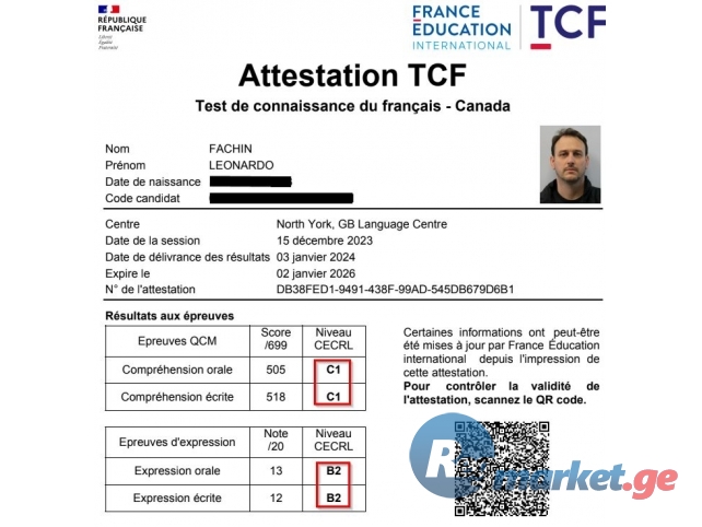 You can obtain Test of Knowledge of French (TCF) certificate that is registered in France | Order your exam certificate today without exam. Take the tcf test at an exam center and get the test result. Get the test result in your personal account immediately after taking this test. Obtaining a TCF Certificate registered in France is real proof of your French skills. The TCF test is the only faculty that officially attests to the French language skills of a French person. However, it is not easy to pass the TCF exam | and it takes a lot of expense, time, and effort.