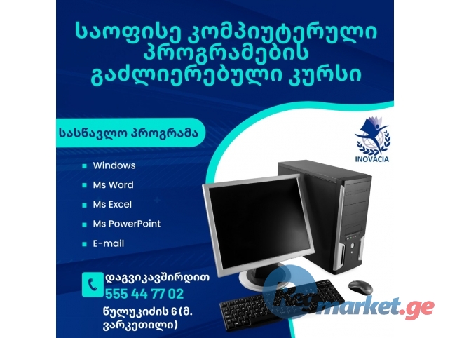 სასწავლო ცენტრი "ინოვაცია" აცხადებს მიღებას საოფისე-კომპიუტერული პროგრამების შემსწავლელ კურსებზე. კურსი განკუთვნილია, როგორც დამწყები, ისე საწყისი საფუძვლის მქონე მსურველთათვის. პროგრამა მოიცავს შემდეგ საკითხებს: Windows: