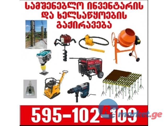 ქირავდება კოლონა, აპალოვკა, ყალიბი, ქარგილი ზომები 30x30 40x40 579-076-120ასევე ქირავდება სამშენებლო ინვენტარი ხელსაწყოები დღიურად სვარკა ბარგალკა მეშალკა ბეტონშემრევი სატკეპნი ვიბროფილა გენერატორი “ დვიჟოკი “ მიწის ბურღი პერფერატორი “ ატბოინი “ სანტექნიკ