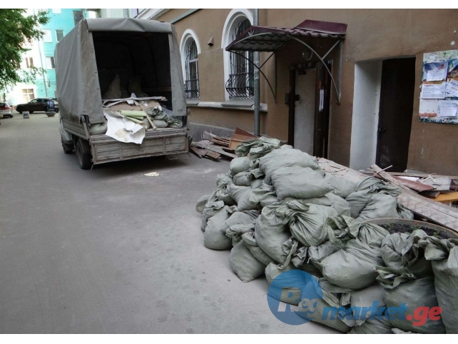 სამშენებლო ნარჩენების ნაგვის გატანა მტვირთავებით ფასი 160 ლარიდან
