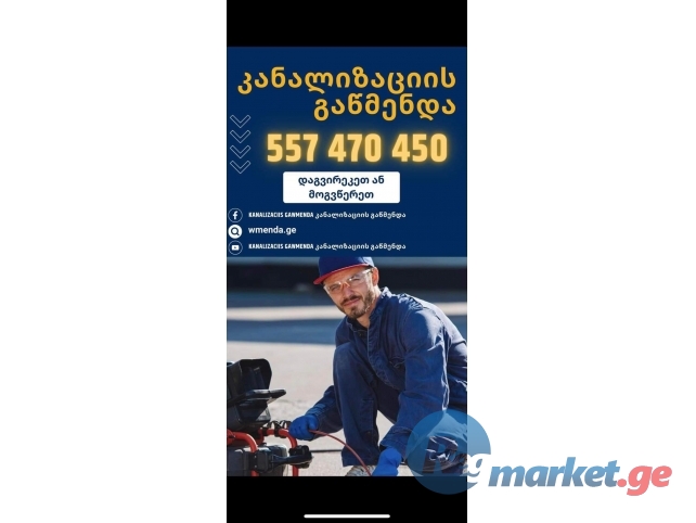ვემსახურებით თბილისს და მის შემოგარენს ფასები 50 ლარიდან საქმის და გასაწმენდი მილის სიგრძიდან გამომდინარე ვწმენდთ ; მხოლოდ გაჭედილ კანალიზაციის მილებს გაჭედილი ჭის მილებს სამზარეულოს მილებს გაჭედილ უნიტაზის მილს გაჭედილი ტრაპის მილს როგორც ელექტრო ტროსით ასევე კომპრესორით 557 470 450