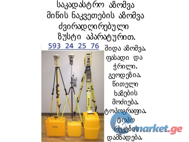 1) აზომვითი ნახაზების დამზადება მაღალი სიზუსტის ჯი-პი-ეს მოწყობილობებითა და ელექტრო ტახეომეტრის გამოყენებით.